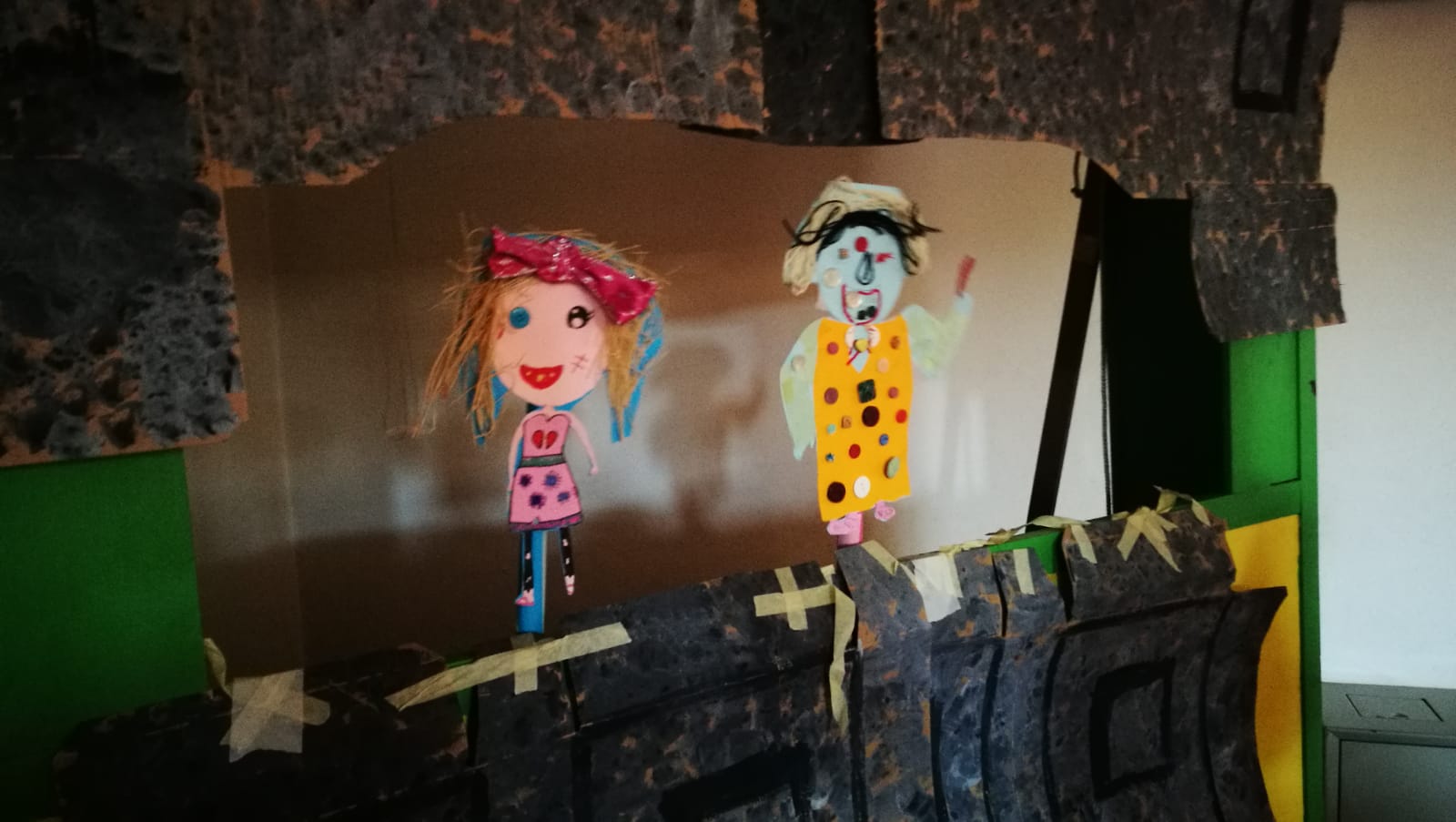 Questi personaggi si sono trasformati in burattini e ci abbiamo fatto degli sketch in lingua inglese. Ci hanno fatto molto divertire.