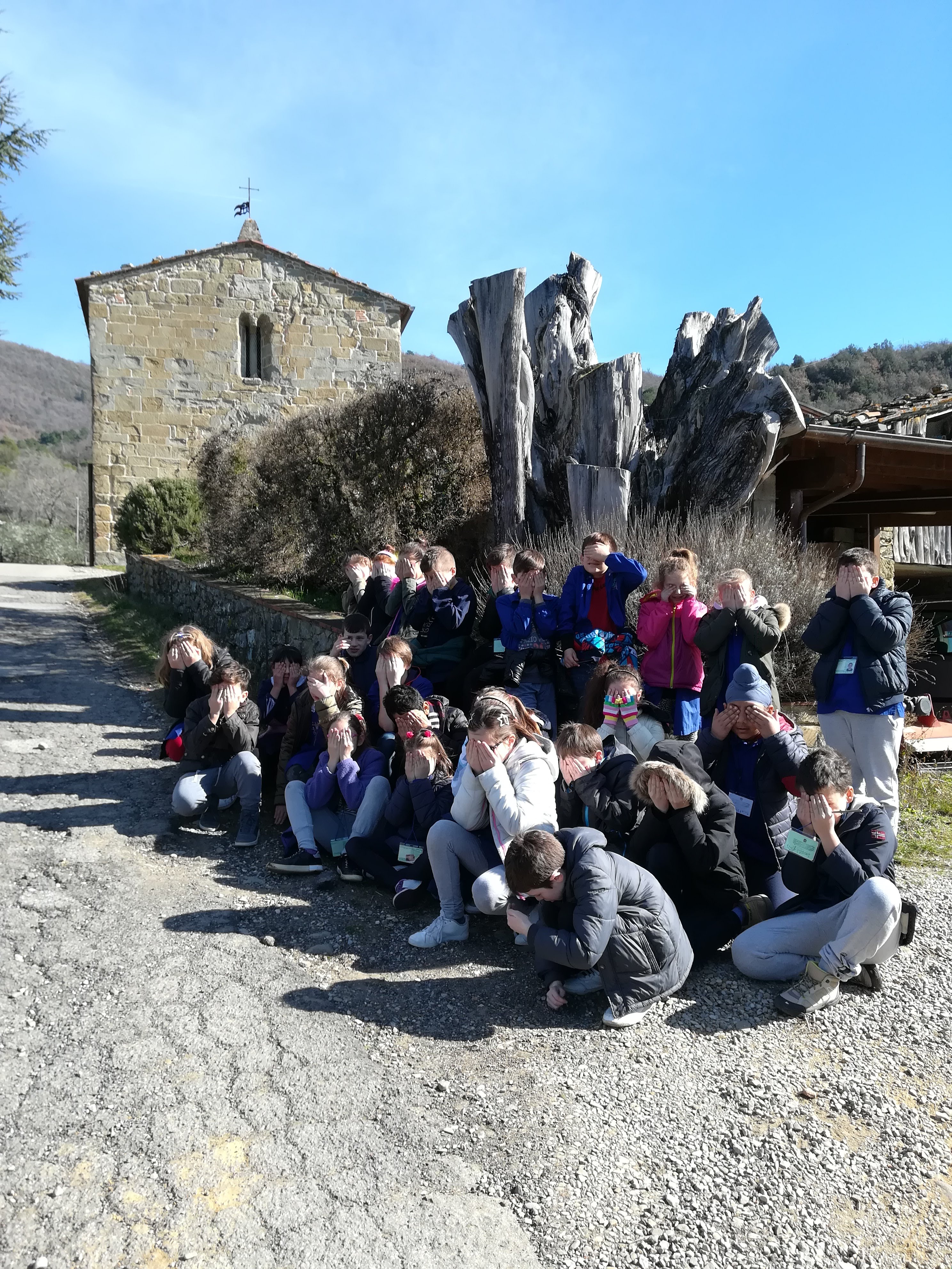 Venerdì 15 febbraio siamo andati a visitare la Badia di Sant’Andrea  a Loro Ciuffenna, per osservare quel che resta dell’antico cipresso. Alle 10,30 siamo usciti da scuola e ci siamo incamminati verso la Badia, passando dietro alla Basilica, per via Gruissan, via Roma, deviando poi per la strada della Badia. Un tempo quella strada era molto importante, perché  portava all’Anciolina, a Chiassaia, in Pratomagno, in Casentino, a Badia Santa Trinita e Casamona. Funzionava un po’ come oggi l’autostrada. Lungo la strada ci sono ancora le pietre che segnavano il cammino. Una volta vi erano anche tanti cipressi. Appena arrivati siamo rimasti sorpresi nel vedere il gigantesco tronco del vecchio cipresso. Ci hanno raccontato che in tempo di guerra ci si nascondevano i partigiani; infatti  dentro sono state ritrovate delle brandine. Quindi ospitava uccellini ma anche persone. Per quanto riguarda il suo abbattimento ci hanno confermato che è stato tagliato perché era malato, mezzo rotto forse per un fulmine, e che era diventato pericoloso. Dopo siamo andati a vedere l’esterno della chiesa. Il campanile prima era situato sopra alla facciata, ora è nella parte posteriore. Nel cortile c’è un bellissimo pozzo in pietra lavorata; un altro si trova nel giardino. Purtroppo la chiesa era chiusa ma sappiamo che al suo interno c’è un antico affresco e vi sono conservate le ossa di Frate Forte. Su di lui e altri personaggi storici sono state scritte storie e leggende. Queste le possiamo leggere nel romanzo storico di Amos Volpini “Carlino de’ Pazzi”. Prima di riprendere la via del ritorno ci siamo fatti una foto ricordo.