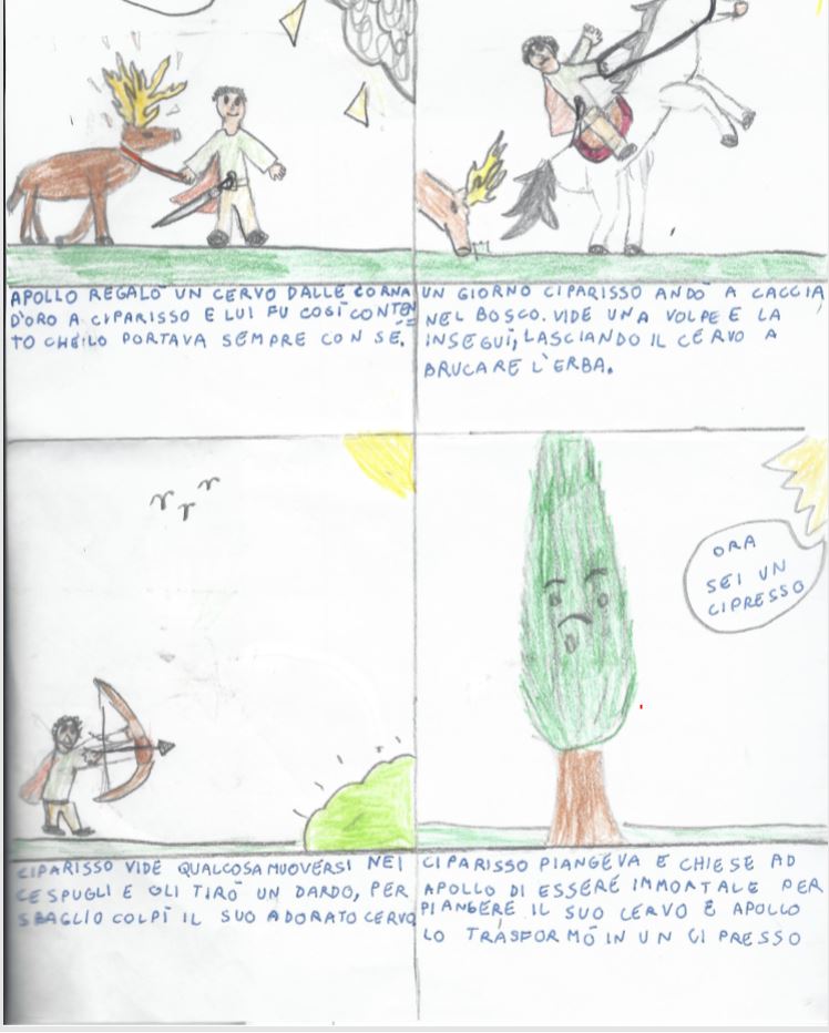 Il mito di Ciparisso racconta di un ragazzo molto affezionato al suo cervo. Durante una battuta di caccia accidentalmente lo uccide e Apollo su sua richiesta lo trasforma in un cipresso per poter ricordare per sempre il suo amico cervo.