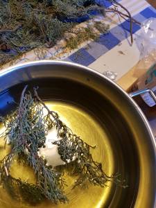 In una pentola immergere i rametti essiccati nell’olio inodore.