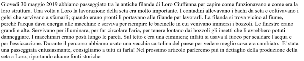 Passeggiata tra le antiche filande di Loro Ciuffenna Postato il 1 giugno 201923 febbraio 2026 di 3classblog Condividi: Condividi su X (Si apre in una nuova finestra) X Condividi su Facebook (Si apre in una nuova finestra) Facebook Mi piace Caricamento...