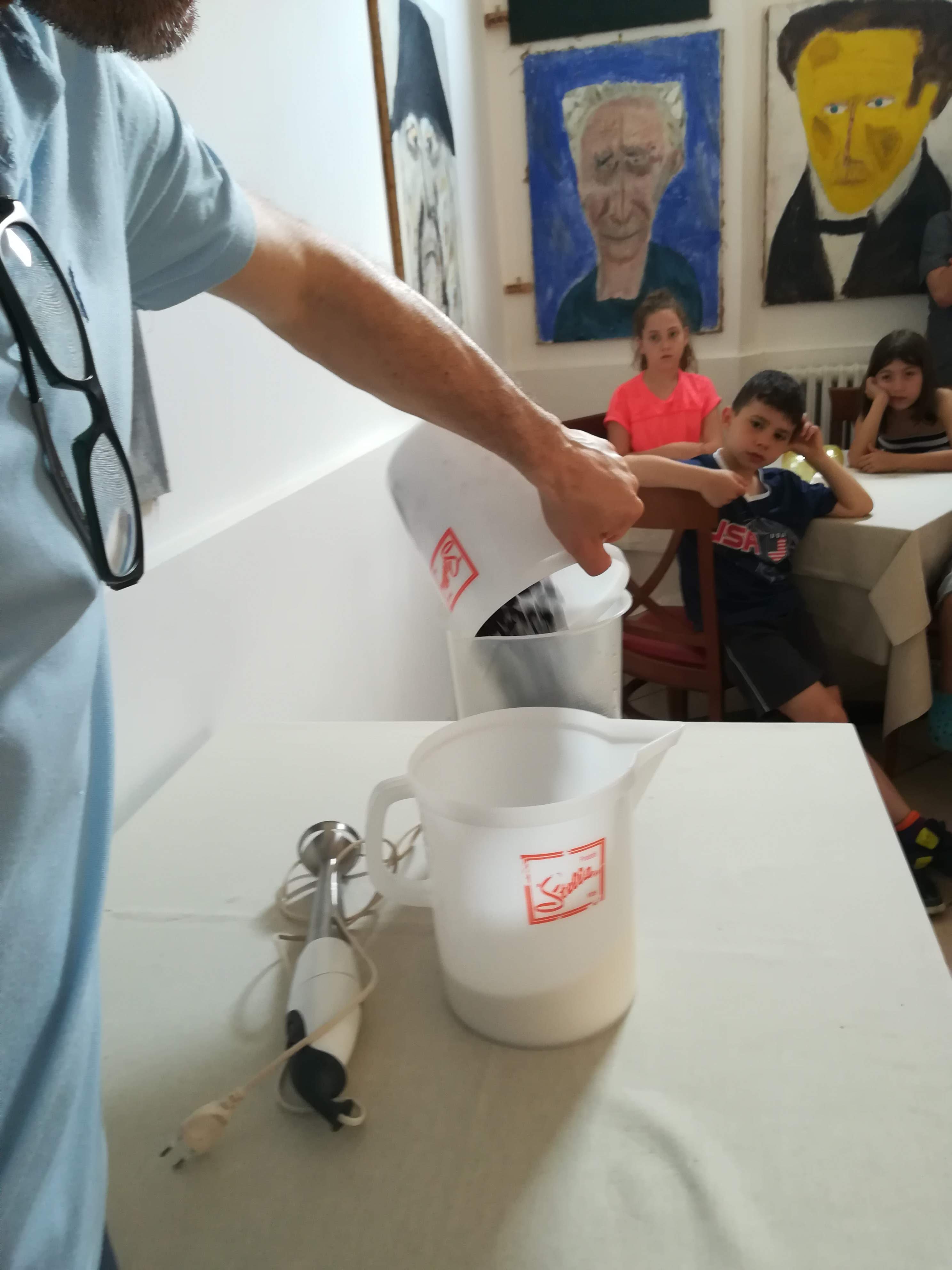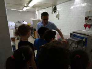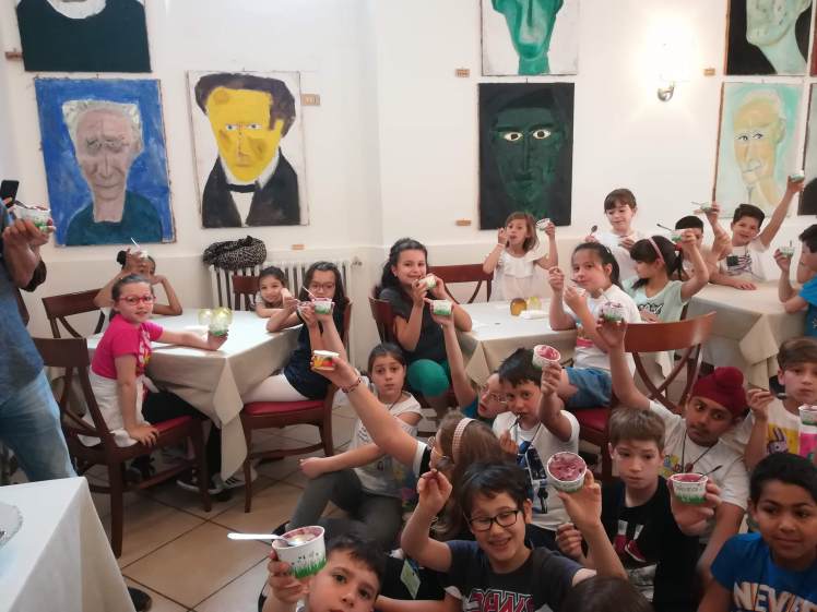 Giovedì 6 giugno 2019 noi delle  classi quarte e terza siamo andati al ristorante-gelateria Cioni (Il cipresso).  Appena arrivati ci hanno accolto gentilmente e ci hanno portato nella sala dei poeti. Lorenzo ci ha mostrato gli ingredienti per fare il gelato di more di gelso: more, acqua, zucchero, addensante. Ha messo le more  nell’acqua e poi le ha frullate. Quando ha finito di frullare ci ha versato lo zucchero, insieme ad un addensante, e ha rifrullato.Quando il composto era pronto lo ha versato in una macchina che lo  ha lavorato e raffreddato, per 13 minuti. Passato quel tempo il gelato era pronto;Lorenzo e Laura ce lo hanno servito. Era fresco e gustoso. Ringraziamo tutti per la bella accoglienza e consigliamo a tutti di gustarsi un bel gelato alle more di gelso!