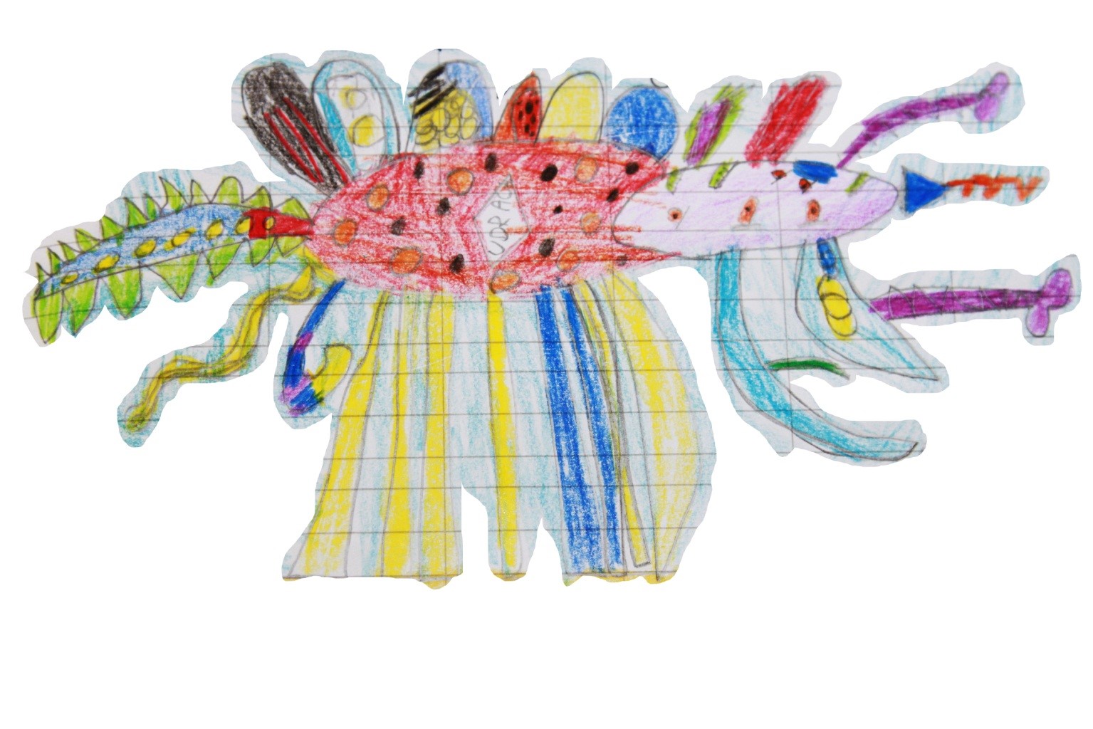 Questo libro, scritto dai bambini qualche anno fa, ci è sempre caro e ogni tanto lo rispolveriamo  per giocare e creare con la fantasia. E’ nato  dall’idea che si potessero creare animali fantastici senza seguire stereotipi, utilizzando materiali e tecniche non convenzionali, scelti dai bambini, e scrivere delle storie. Fonte di ispirazione è stato il libro Bestiario universale del professor Revillod, con cui  è possibile creare animali fantastici con la loro breve descrizione, semplicemente girando  una o più parti di una pagina.