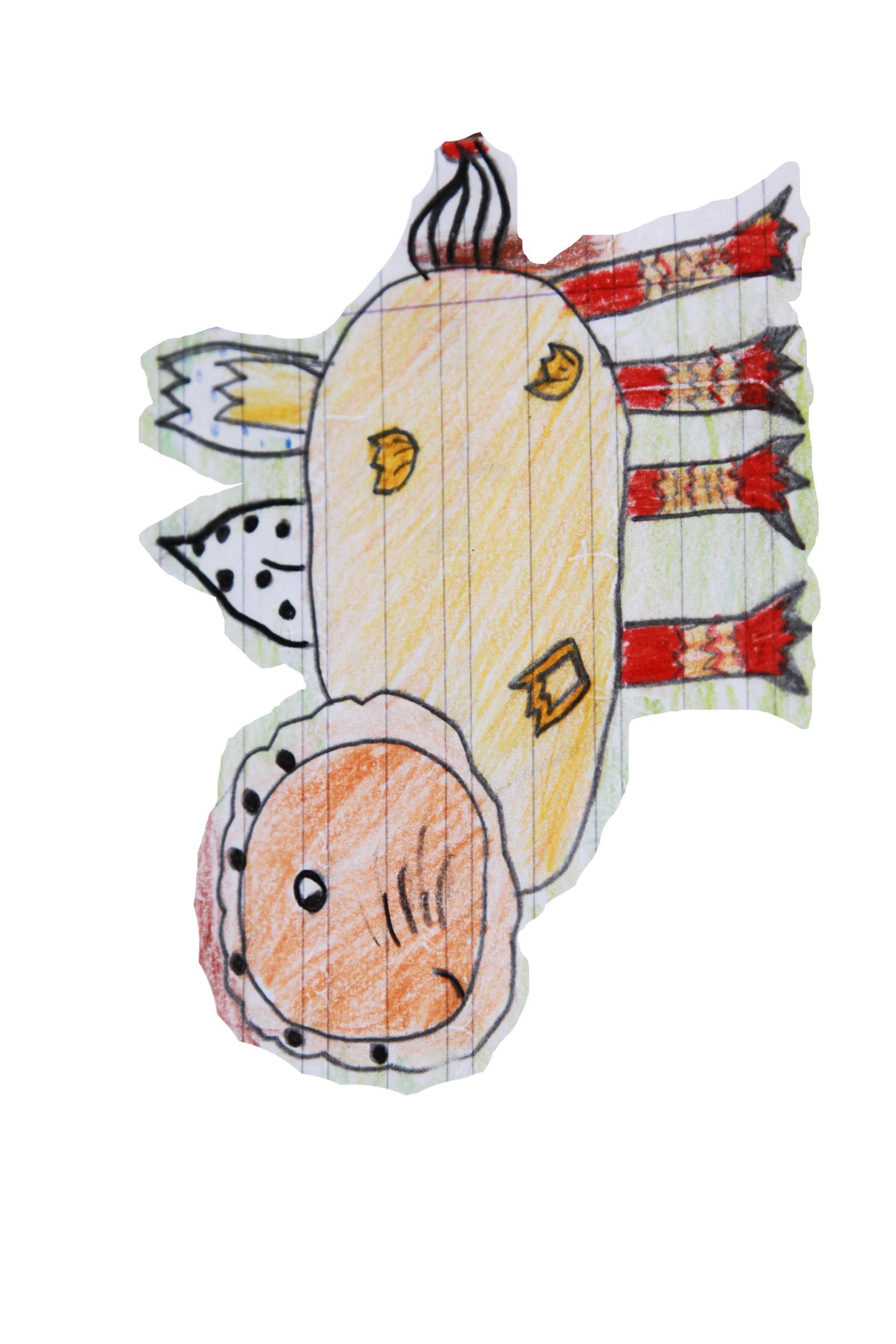 L’udraca è un animale con la testa al contrario. Ha la lingua a forma di spada, ha due corna di colore celestino e molto appuntite.
