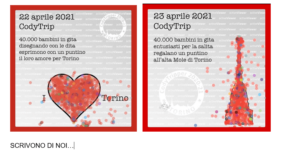 Il 22 e 23 Aprile 2021, CodyTrip ha offerto alle scuole un viaggio di istruzione online di due giorni a Torino, permettendo a migliaia di ragazzi tra i 7 e i 14 anni di condividere una gita scolastica malgrado il “lockdown”. L’esperienza si è svolta totalmente online, con il coinvolgimento delle famiglie, degli insegnanti e delle scuole, che l’hanno gestita come un vero viaggio di istruzione, simulandone anche gli aspetti logistici e conviviali: il viaggio, la cena insieme, il pernottamento in albergo, la storia della buona notte, il risveglio muscolare e il tempo libero per la città. Da allora, molte delle famiglie che hanno partecipato alla gita virtuale con i propri figli hanno deciso di visitare e si sono presentate agli operatori museali, alle guide, agli esercenti e ai ristoratori conosciuti online.
