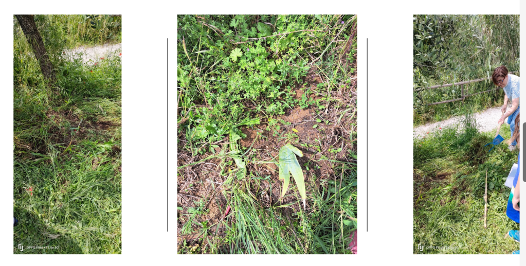 Martedì 23 maggio siamo andati nell’orto. Appena siamo arrivati abbiamo scelto il posto adatto per piantare il cetriolo, abbiamo fatto una buchina nel terreno concimato, usando una piccola vanga. Abbiamo ricoperto di terra le radici poi abbiamo annaffiato la piantina. Dopo abbiamo cercato i nostri giaggioli:3 non sono nati, 2 erano sommersi dall’erba e li abbiamo “liberati”, e ripuliti tutto intorno. Forse gli altri non sono spuntati per vari motivi: le formiche lo hanno mangiato, le radici di altre piante li hanno bloccati; non avevano abbastanza luce; il bulbo era un po’ vecchio; mancanza di acqua. Il prossimo anno pianteremo tanti giaggioli e cercheremo di curarli meglio, ora che li conosciamo bene!