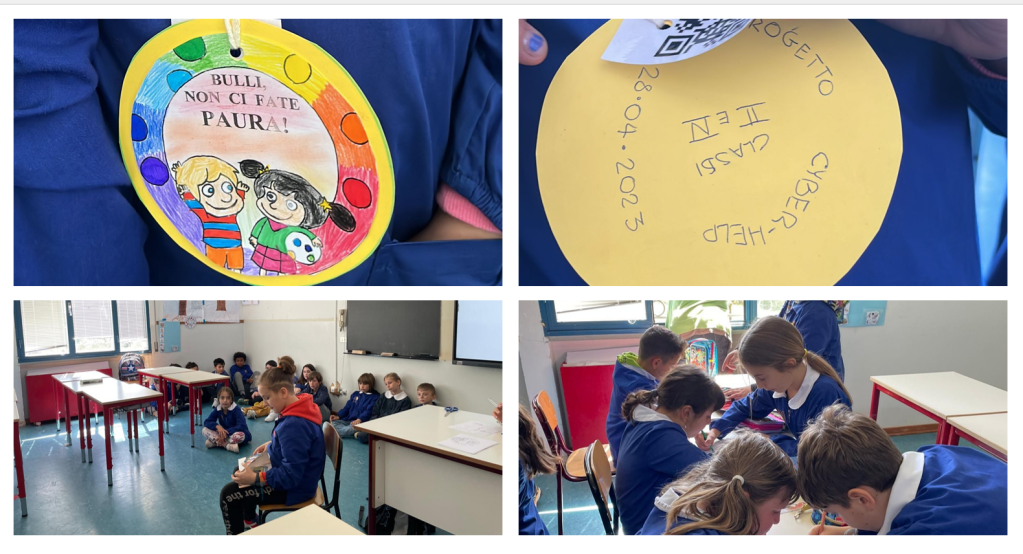 La classe 4 di San Giustino V.no, nell’ambito del Progetto CyberHelp, ha realizzato un PowerPoint per parlare di bullismo e cyberbullismo ai compagni delle classi 1, 2 e 3. I peer educator hanno usato un linguaggio semplice: la lettura animata di un albo illustrato, la drammatizzazione di una scenetta e la realizzazione di una medaglia!