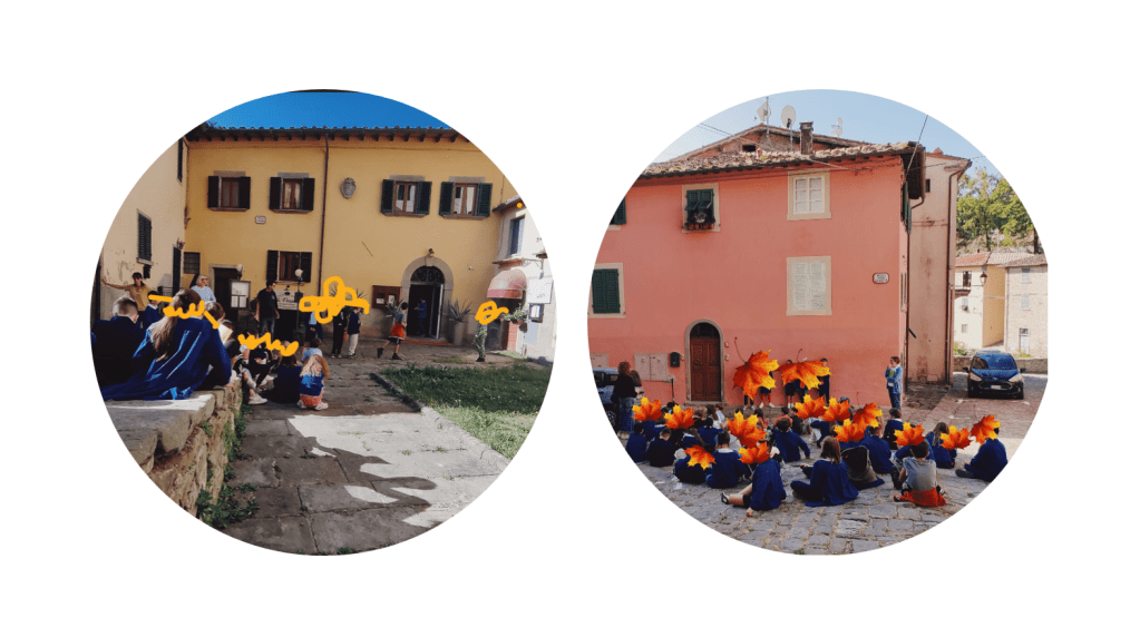 Giovedì 12 ottobre le classi 4^A e 4^B hanno accompagnato i bambini di 3^A per le piazze di Loro Ciuffenna e hanno fatto loro da guida. Hanno raccontato come sono fatte e la loro storia. Il percorso è iniziato dalla piazza più antica, per poi continuare con le altre. Ad ogni tappa un gruppo faceva da guida: dava spiegazioni e raccontava la storia di quel luogo. Le informazioni sono state ricavate dal libro-guida, realizzato lo scorso anno dagli stessi alunni: “Le antiche piazze di Loro Ciuffenna”. Sono stati tutti contenti e felici! La prossima volta concluderemo con la seconda parte del tour.