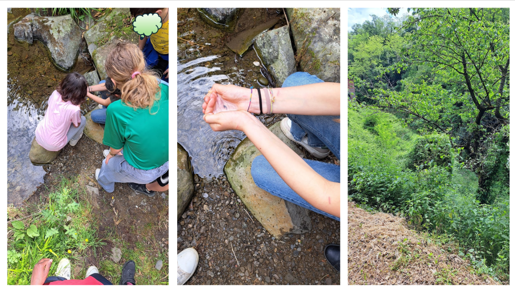 Giovedì 16 maggio siamo andati a visitare il Borro della Madonna e il Borro di Tonino, che sono due affluenti del fiume Ciuffenna. Entrambi nascono nella zona della Badia, seguendo percorsi diversi. Il Borro della Madonna è come un piccolo torrente; ci sono piccole cascate e pozzi. L’acqua è molto pulita, di colore verde trasparente; il letto del borro è ricoperto di sassi; qua e là emergono degli scogli. Nell’acqua, attaccati a dei sassi, ci sono (in questo periodo) tanti girini che muovono la coda; alcuni esploravano il pozzo, nuotando, muovendo velocemente la coda. Uno di noi ne ha preso uno tra le mani e quello continuava a sguazzare tranquillamente; quando è ritornato nel suo pozzo… ha aspettato un pochino e poi è ripartito all’avventura! Abbiamo visto i “ragni d’acqua” che si muovevano a scatti a pelo d’acqua. Sappiamo che ci vivono altri tipi di pesce come la trota, ma non ne abbiamo visti. Forse si nascondevano. Si sentiva il fruscio delle foglie, lo scrosciare dell’acqua e il canto degli uccelli. Seguendo il sentiero che passa dal vecchio frantoio siamo arrivati al ponte nuovo e da lì abbiamo individuato dove si trova la foce; ma non si vedeva per la tanta vegetazione. Il Borro di Tonino scorre lungo la circonvallazione, ma è stato interrato. Passa dal parcheggio che prende il suo nome e si getta nel Ciuffenna, lì sotto. Anche in questo caso non abbiamo potuto vedere la foce, sempre per l’abbondante vegetazione. Nel parcheggio, protetto da un vetro si può vedere l’antico ponte. Proseguendo per la via Piana si può godere di un bellissimo paesaggio: il fiume, la vegetazione, il centro storico. Dal ponte vicino alla Piazza Matteotti abbiamo fatto un saluto al nostro bellissimo fiume! Durante la passeggiata ci sono venuti in mente dei ricordi…