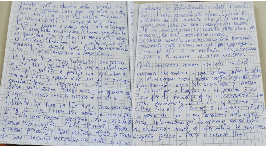 Giovedì 17 ottobre Lorenzo e Marco Bracci di una azienda agricola del nostro paese ci hanno fatto una lezione sugli olivi nei campi davanti al Ponte nuovo. Ci hanno dato informazioni e hanno risposto a tante domande che abbiamo fatto. Li ringraziamo tantissimo. ( 4^A-5^A 5^B)