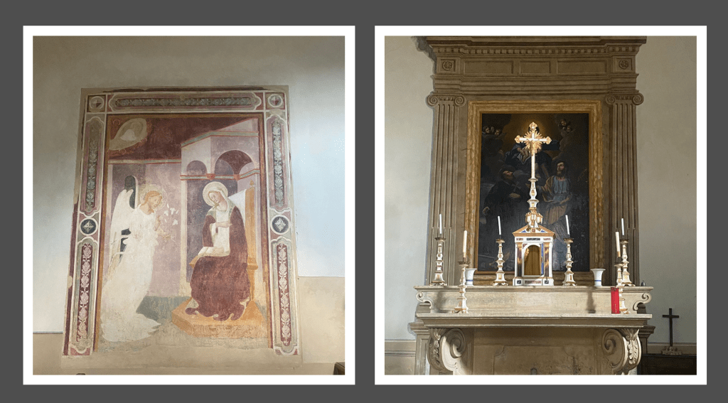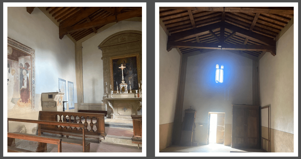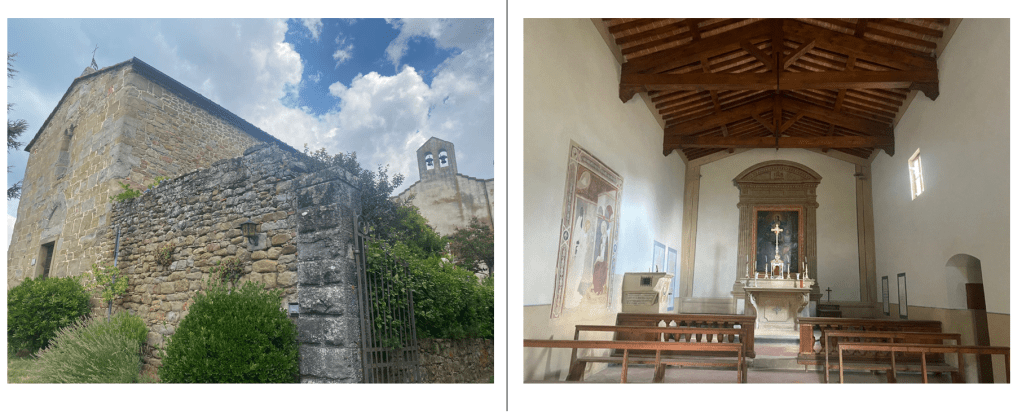 Frate Forte era un cavaliere che nella sua vita aveva commesso dei reati e vissuto molte avventure. Le sue storie si trovano scritte nel libro del Manneschi (Memorie Valdarnesi) e nel romanzo di Amos Volpini, Carlino de’ Pazzi. La chiesa ha un portone in legno; sopra c’è una finestra bifora. All’interno è composta da una navata. Il tetto è in legno, restaurato. Nella zona dell’abside , dietro all’altare c’è un dipinto del ‘700, raffigura la Madonna col bambino e due santi protettori della chiesa: Sant’Andrea e San Giovanni. Sulla sinistra c’è un affresco, L’Annunciazione. Vicino all’altare c’è una cella dove sono conservate le reliquie di Frate Forte.