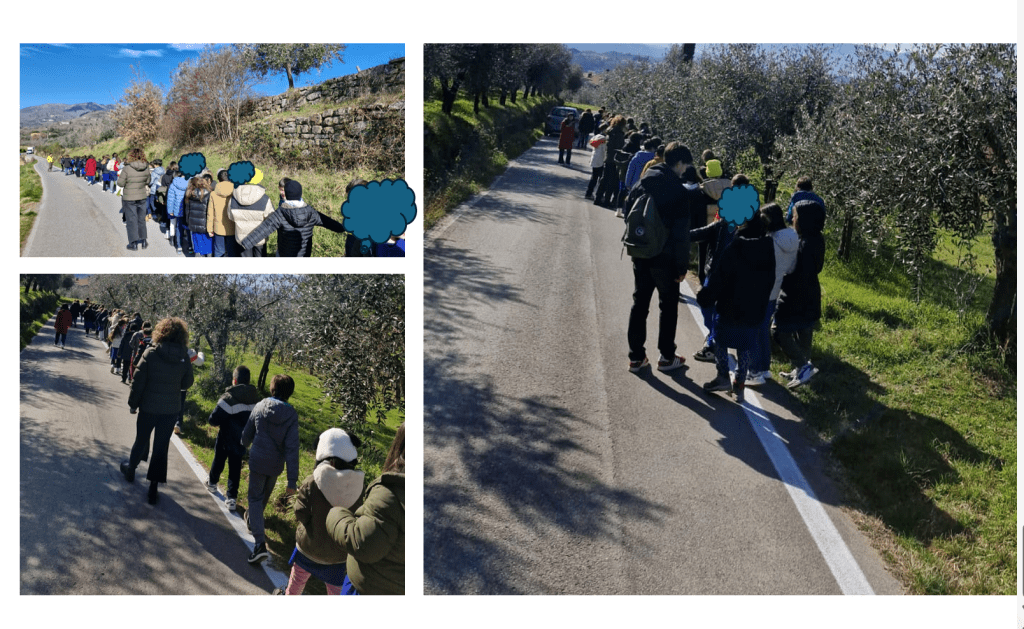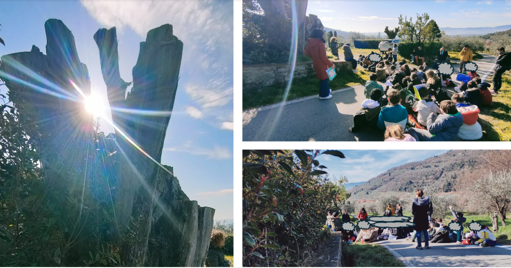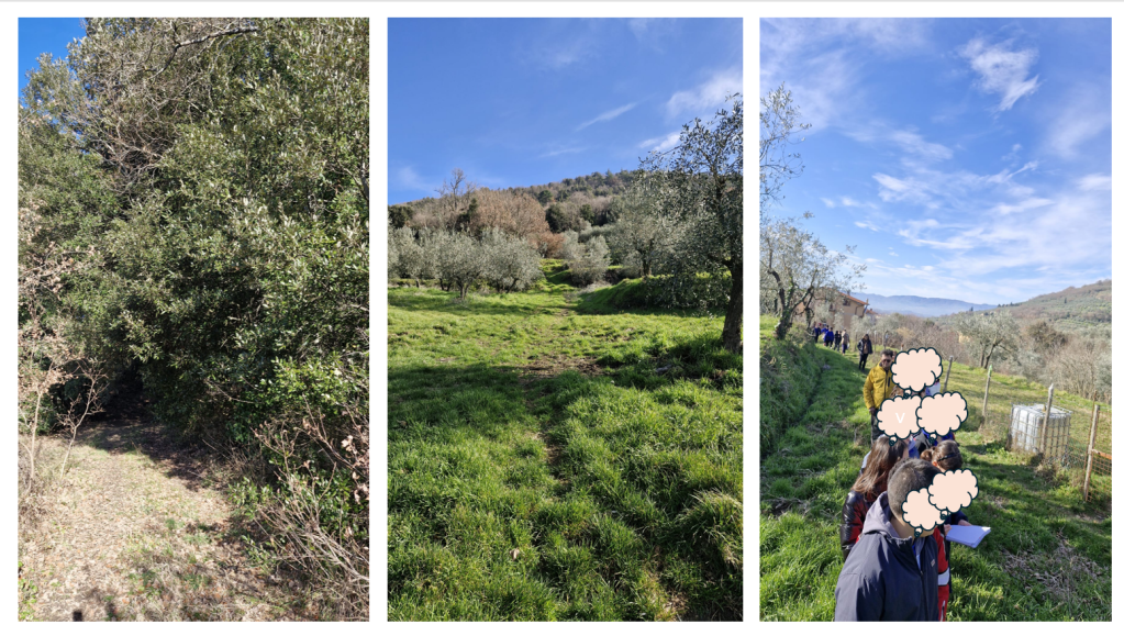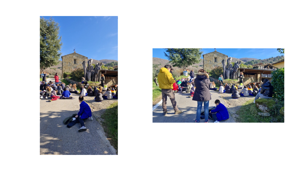 Per raggiungerla abbiamo fatto un percorso nel bosco. Siamo partiti dalla nostra scuola, abbiamo fatto le scalette, dietro alla chiesa, abbiamo oltrepassato le Scuole Medie, abbiamo proseguito, siamo arrivati nei campi. Ci siamo addentrati nel bosco, lungo un sentiero. Ad un certo punto abbiamo trovato un piccolo torrente, un affluente del Ciuffenna, che passa sotto via Gruissan.