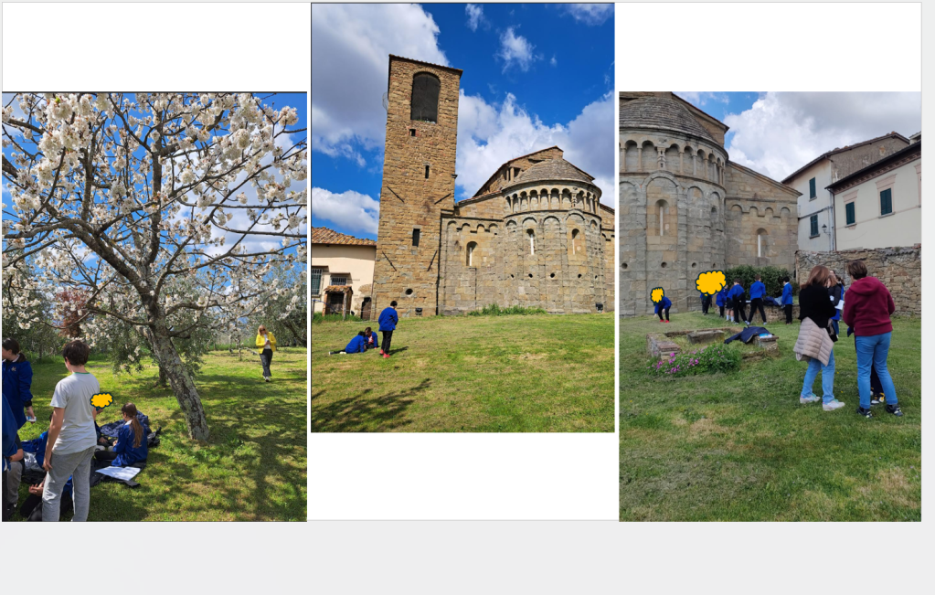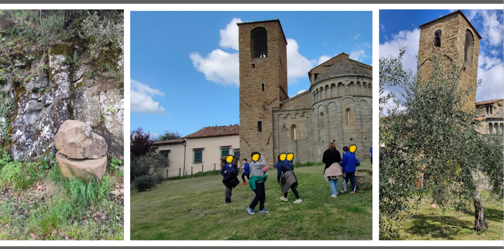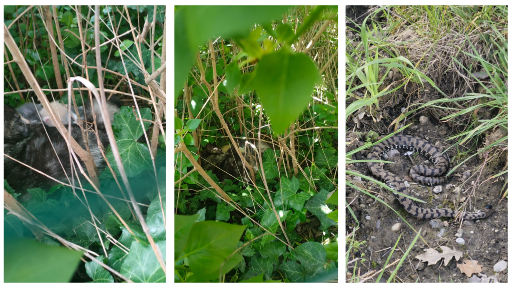 Giovedì 10 aprile siamo andati a Gropina. Durante il tragitto all’altezza del grande pino marittimo, abbiamo avvistato una vipera , lungo la fossetta (qualcuno ci ha detto che potrebbe essere una serpe bottaia..il dubbio rimane…indagheremo!). Attorcigliata su se stessa e immobile sembrava morta, si mimetizzava bene con la vegetazione infatti era marroncina striata di nero. Abbiamo mantenuto la calma e abbiamo proseguito la strada verso la pieve. Nel giardino un altro incontro inaspettato. Tra l’edera e gli arbusti abbiamo visto una gatta con i suoi gattini : 2 bianchi 1 rosso 1 pezzato . Che tenerezza ! E’ stata proprio una mattinata piena d’incontri sorprendenti.