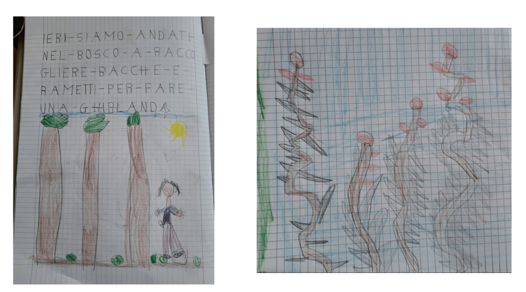 Giovedì 4 dicembre siamo andati nel bosco a raccogliere le bacche (B come BACCA!) di rosa canina e rametti per costruire una ghirlanda. Pianteremo i semi della rosa in dei vasetti. Speriamo che cresca una bella pianta!