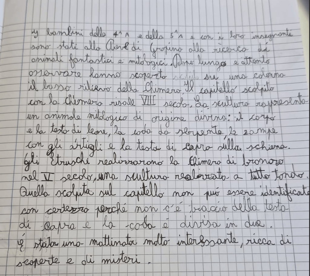 Animali fantastici nella Pieve di Gropina Postato il 27 febbraio 2026 di icventurinoventuri I bambini della 4^A e 5^ A sono stati alla Pieve di Gropina alla ricerca di animali fantastici e mitologici. Condividi: Condividi su X (Si apre in una nuova finestra) X Condividi su Facebook (Si apre in una nuova finestra) Facebook Mi piace Caricamento...